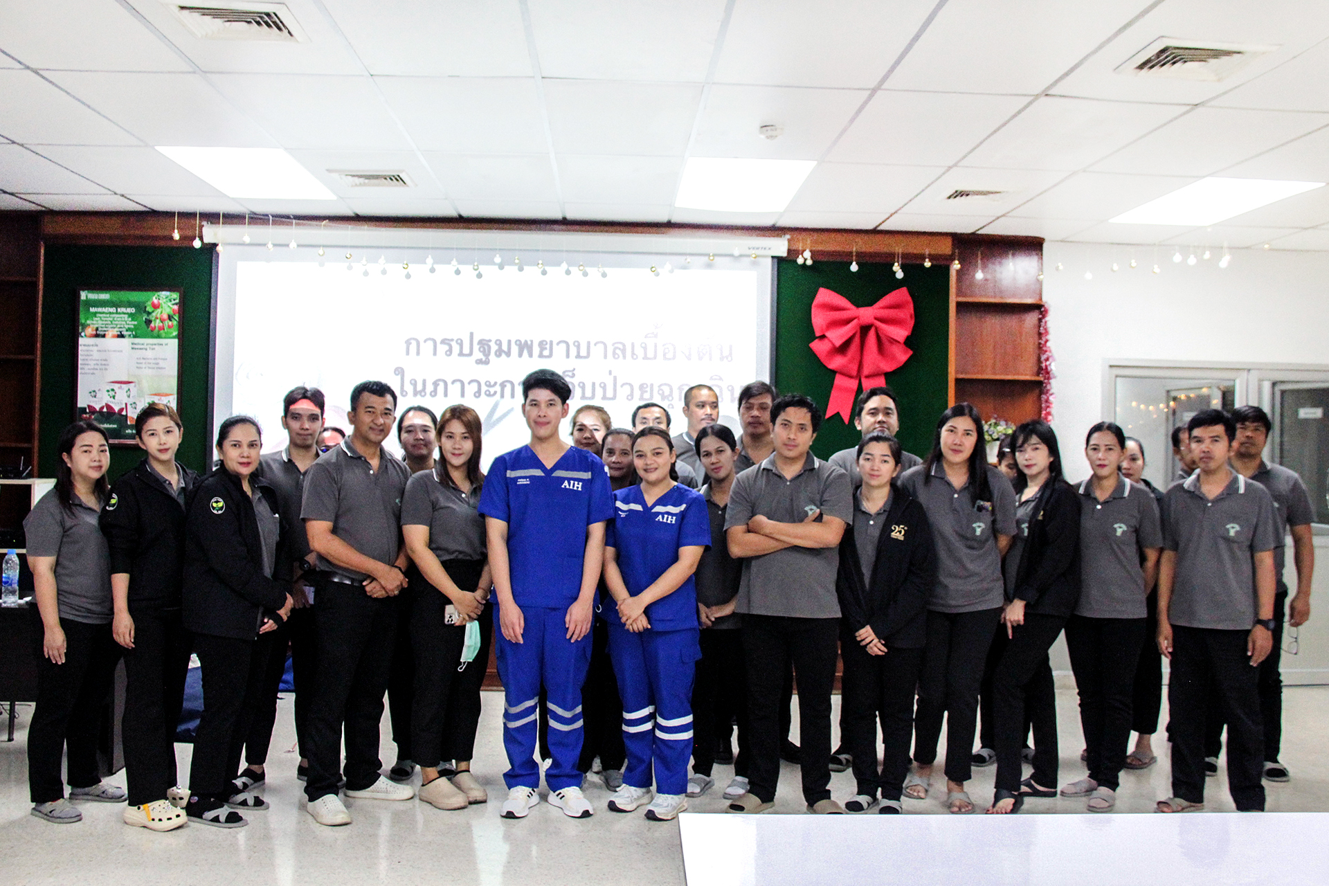 วันจันทร์ที่ 22 ธันวาคม 2568 บริษัท ผลิตภัณฑ์สมุนไพรไทย จำกัด ได้จัดการอบรมในหัวข้อ “การปฐมพยาบาลเบื้องต้นและการช่วยชีวิตขั้นพื้นฐาน” ให้แก่พนักงานทุกระดับ โดยได้รับเกียรติจากทีมวิทยากรผู้เชี่ยวชาญจาก โรงพยาบาลเอเชีย อินเตอร์เนชั่นแนล มาให้ความรู้และถ่ายทอดประสบการณ์อย่างใกล้ชิด