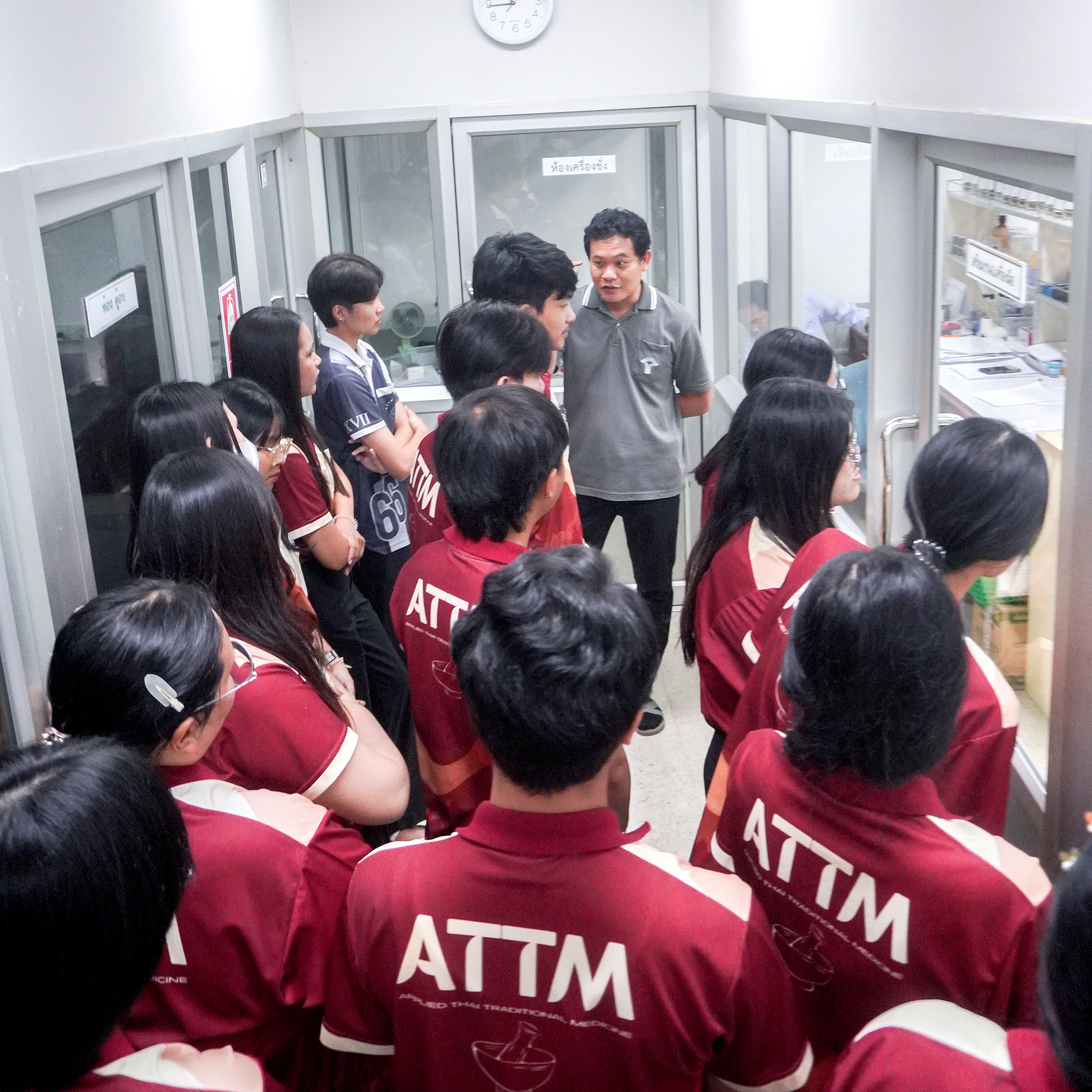 จำนวน 45 ท่าน เข้าศึกษาดูงานกระบวนการดำเนินงานในพื้นที่จริง ครอบคลุมฝ่ายผลิต ฝ่าย QA/R&D พร้อมทั้งเยี่ยมชมผลิตภัณฑ์ ณ ร้านยาสมุนไพรของบริษัท